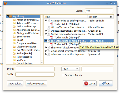 Figure 4. Gnotero provides easy access to your Zotero references.